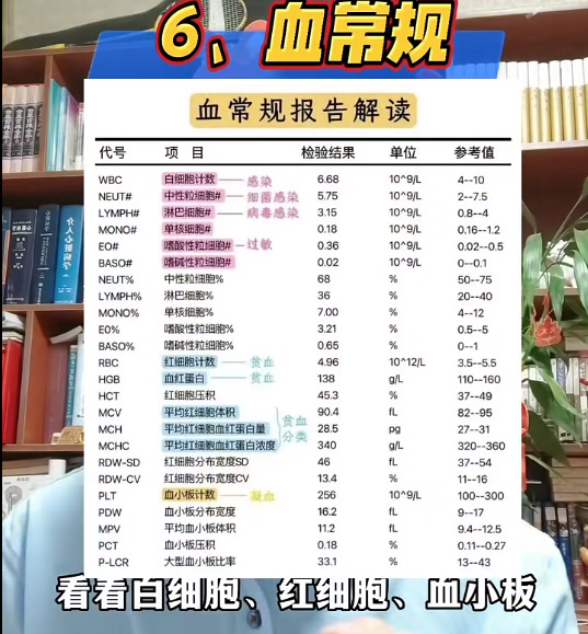 因為如果高血壓同時合并了同型半胱氨酸升高那么腦梗的風(fēng)險就會增加。所以很有必要對高血壓的人來講,查一個同型半胱氨酸。血糖血脂100個人中就有10個糖尿病的人數(shù)據(jù)來源《中國血脂管理指南》。長期高血脂糖尿病,如果沒有得到有效的控制,會增加血管堵塞的風(fēng)險,所以我們要查一查我們的血脂四項,查一個空腹血糖。也沒必要做一個生化全套。意義不是很大。高尿酸容易引起痛風(fēng)。也會增加心血管疾病的風(fēng)險。尿酸一般在這個腎功能當中,順便查一下肌酐、尿素氮、電解質(zhì)、鉀鈉氯。肝功能的簡項,肝功能也有很多種,查相對比較簡單的,別整太多的。最后就是差血常規(guī),看看白細胞、紅細胞、血小板看看有沒貧血也就足夠了。其實就是抽兩管血,這也是最基礎(chǔ)最重要的幾個檢查項目。